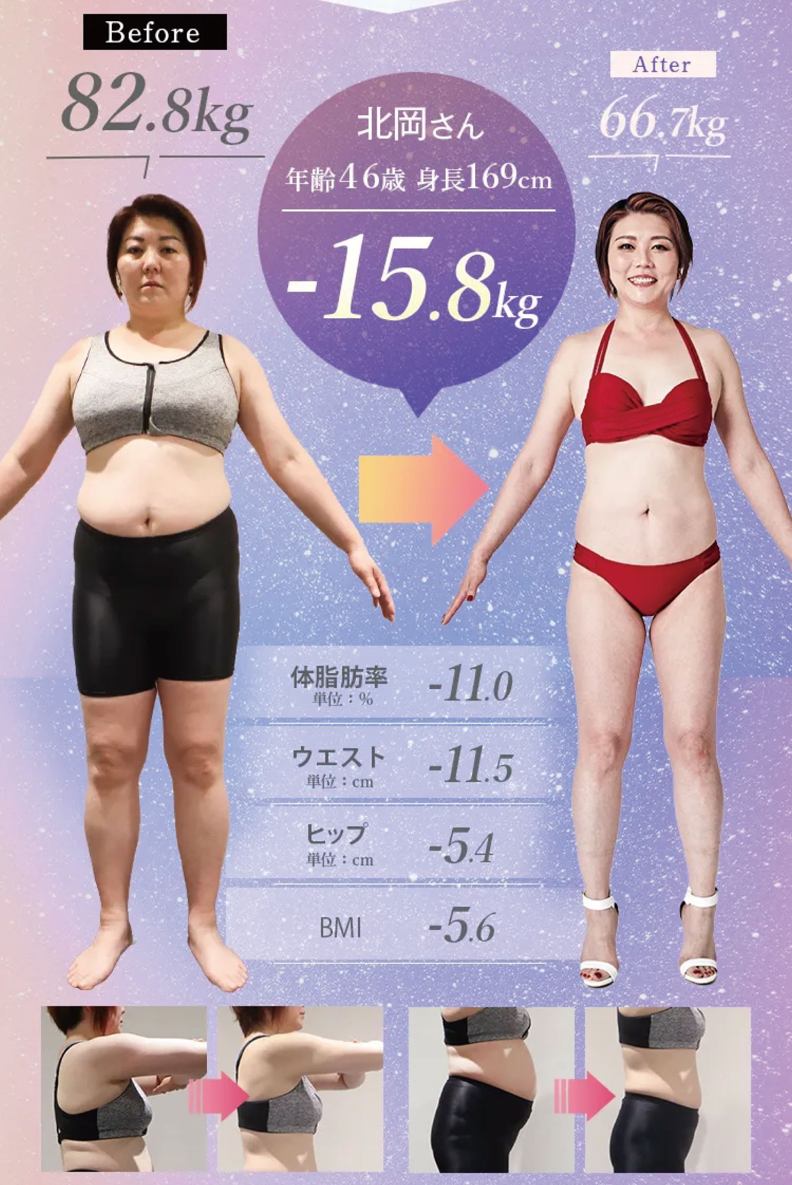 ※3ヶ月医療痩身ボディメイクを契約されたモニター対象の会員の代表的な事例を提示しています※効果には個人差があります※個人の感想です